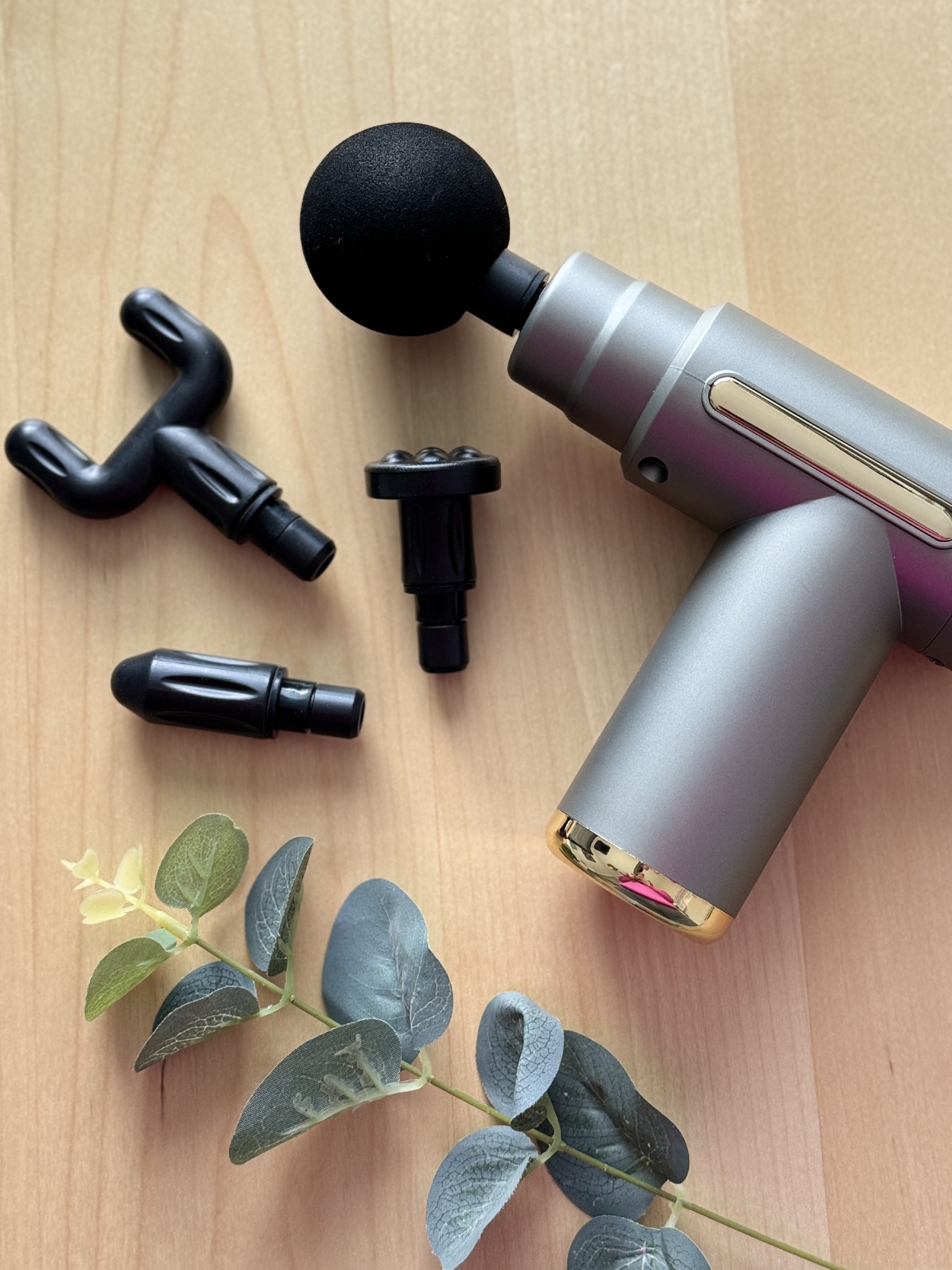 $12.990El precio original era: $12.990.$9.742El precio actual es: $9.742.Regala bienestar con este increíble masajeador portátil que cuenta con 4 cabezales diferentes para masajear distintas zonas del cuerpo. ¡NO USA PILAS!, se recarga fácilmente vía USB tipo C, cuenta con un indicador de batería y un botón de apagado y encendido.
