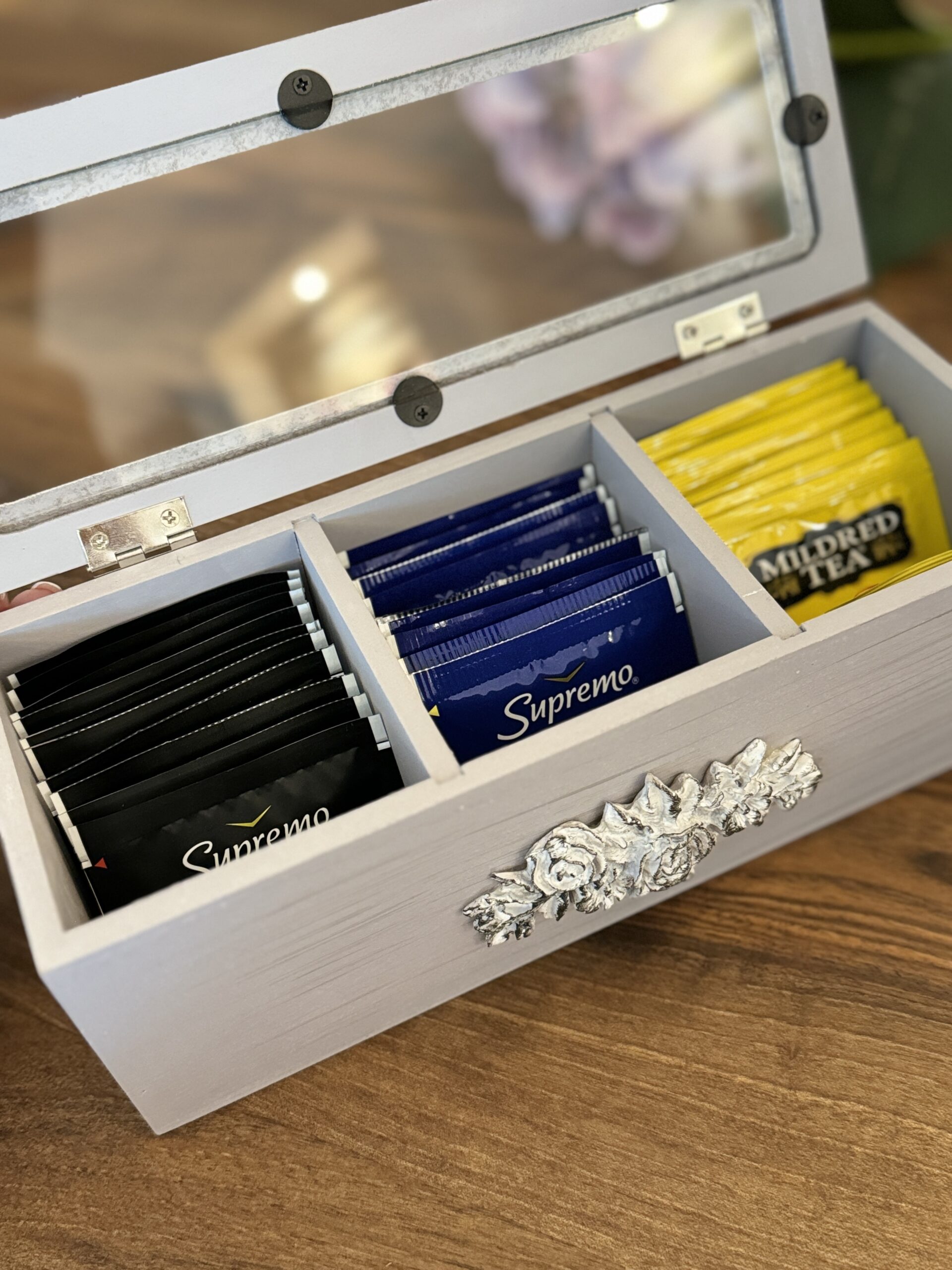 $7.990El precio original era: $7.990.$5.593El precio actual es: $5.593.La hora del té no es hora del té sin esta hermosa cajita de madera donde podrás guardar hasta 30 bolsitas de las variedades más exquisitas que conozcas.