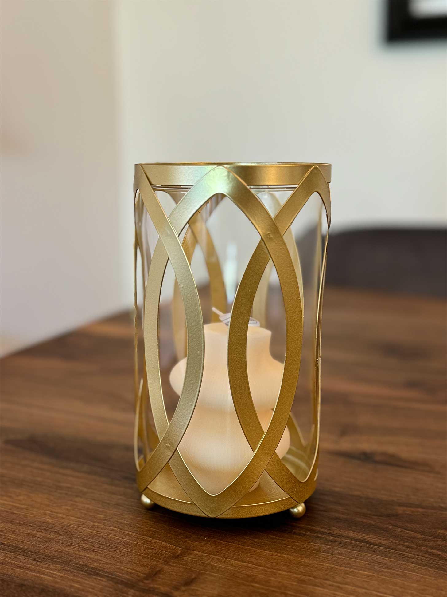 Contagia de romanticismo tus noches y de un precioso estilo de día con nuestro hermoso farol porta vela de óvalos de 20 cms de altura.
